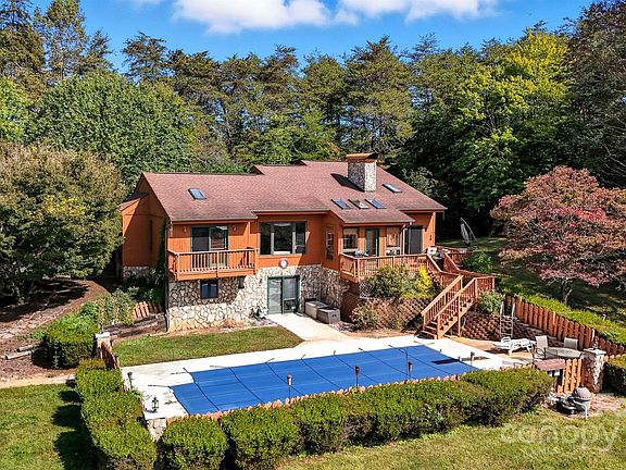 Looking for the mountain retreat feeling but close to everything? Look no more! This wonderful 3BR 3BA home sits on 3 acres (per plat) overlooking inground pool with mountain views. Kitchen features large windows with views, quartz countertops, plenty of cabinetry, and is open to the dining area. Dining room has plenty of natural lighting from skylights, French doors that lead to deck that overlooks pool, and access to sunroom. Also featured in dining room is the exposed rock fireplace. Living room is located off the front entry and features a large window that also overlooks the pool and mountain views. Master Bedroom features skylights and private deck with same view as LR, WIC, and spacious MBA. Downstairs you will find a family room with stone fireplace. A billiard area with built in storage benches. The entertainment/bar area is located off the family room. The basement also offers a large office with built in desk and filing drawers. You will also have the added convivence of a full bath in the basement, perfect for the days at the salt water pool that awaits you outside. Children's playground is located in side yard ( no warranties to condition ). All windows are casement windows which offers unobstructed views of mountains. HVAC units were recently serviced. Seller is relocating home to NJ.