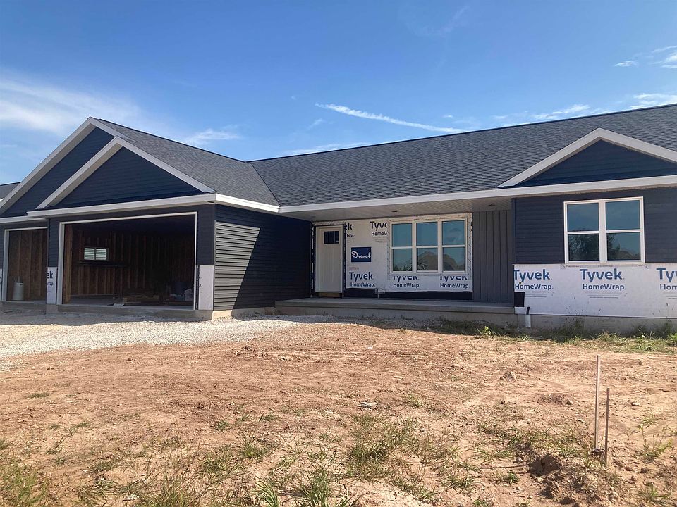 New construction ranch in Kaukauna! 3 bed/2 bath with an open concept and split bedroom design. Cathedral ceiling over the living room and kitchen/dining area. Kitchen has a walk-in pantry, large island, and appliances included. Master bedroom has an attached walk-in closet and attached bathroom with dual vanities and a shower. The attached 3-car garage has access to the basement, which has an egress window and is stubbed for a future bathroom. Additional features include a large, covered front porch, tray ceiling in the master bedroom, passive radon system, and efficient 2-stage furnace. Driveway and rear patio (18' x 12') included. *Anticipated completion date 11/08/24*.