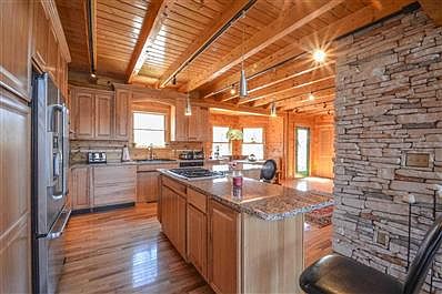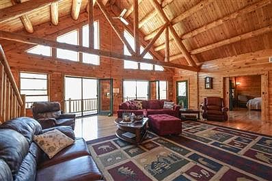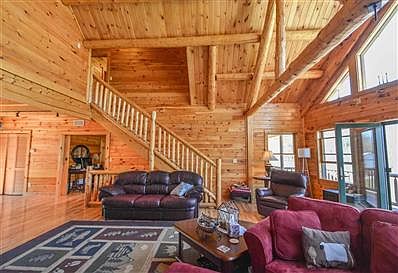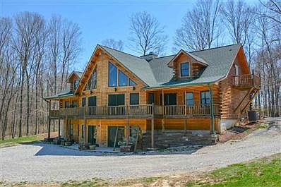Exquisite Custom Built Cedar Log Home 2009 with 7000+ sq ft on 10+ acre mostly wooded estate. 4 Bedrooms. 4 bath and all main/ upper level baths have own full bath with jetted tub and separate shower. Two Master Suites on Main Level, Gourmet Kitchen w/granite counter tops and Jenn-Air stainless steel commercial grade appliances. Lower level kitchen, workshop, recreation room, fireplace, Jacuzzi tub, poured concrete walkout basement, 3 walk in showers. fireplaces main and lower level, walk in closets, pocket doors, Great Room with window wall and cathedral ceiling. 3200 sq ft finished garage/woodwork building on site.