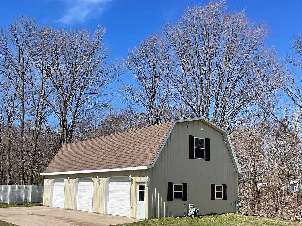 You won't want to miss this 2 bedroom, 1 and 1/4 bathroom barndominium style home situated on 1.42 acres with a 3 stall garage, brand new roof and ample storage space! This home shows like new, has main floor laundry and beautiful barn style doors throughout. The expansive backyard includes a pathway to a private bonfire area, perfect for those Michigan summer and fall nights. Schedule your private showing today! This home is NOT for RENT, FOR SALE ONLY. **Seller will be reviewing highest and best offer on Monday 4/10/23 at 2pm.