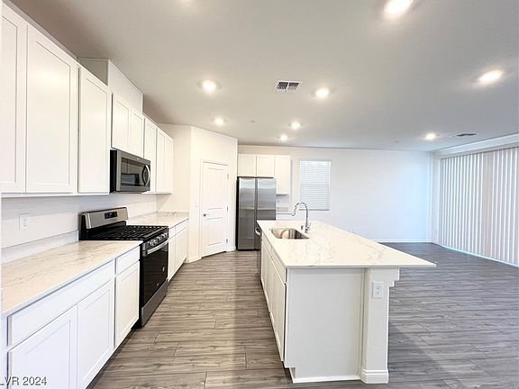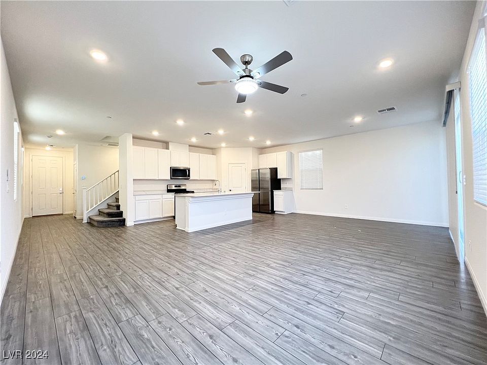Beautiful BRAND NEW house w/ 5BR+LOFT+3FULL BA (1BR+1BATH downstairs) & located at growing Inspirada Master-Plan Community featured multiple parks, sports fields & walking trails; Upgrades include: 9" ceiling & white mission railing on 1st floor; Contemporary ceiling fans w/ LED light & remote at all rooms; 42" white cabinets w/ roll out tray, quartz countertops, upgraded SS appliances, undermount single basin sink & One Handle High Arc faucet in kitchen; Separate tub & shower w/ quartz surrounds, extended cabinets w/ 2 sinks, big window, separate water closet & large walk-in closet at primary suite; Flat-Panel TV Prewire & 4 recess lights in living rm; 2 sinks & window in hallway bath; Undermount sinks & quartz countertop in all baths; Luxury Vinyl Plank t/o 1st floor & all wet areas and upgraded carpets and pads at all other areas; Cordless blinds; 8'x8' Sliding Glass Door; Water soft loop & tankless water heater at garage; Some strip, mountain and city views from primary suite.