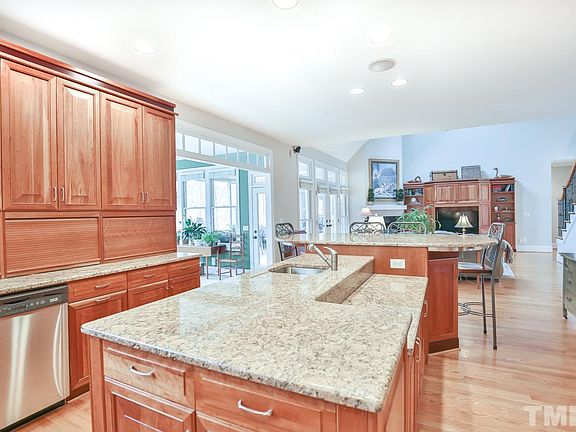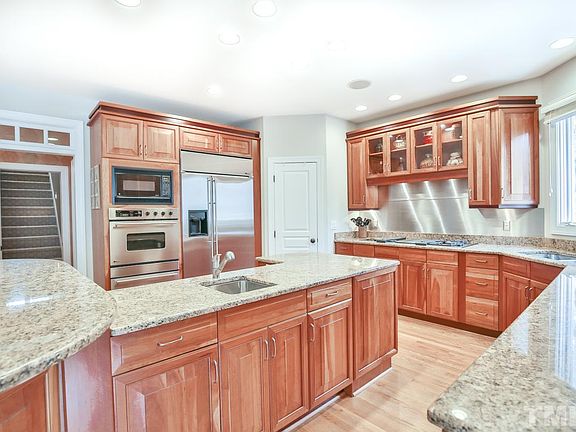 Privacy at its Best! Brick/stone estate on HUGE, rare to find flat lot(.8 acres).You will LOVE all the first floor living. Harness your inner chef in the gourmet kitchen that opens to the Living area so the cook can be part of the action. Lots of sunshine in the glorious Sun Room, plus a screened porch for perfect "Carolina Living!" Front Office, and Master bedroom on the first floor. Gracious upstairs with bedrooms and bonus. Fantastic LOWER LEVEL with full Bath/BR/LR. Total 5BRs/5.5Ba. Close to UNC/DUKE
