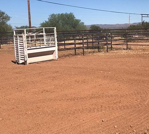 Just in time for roping & riding season! Don't miss the well thought out property sitting nicely on 8 very usable acres. Currently there is a 150 x 300 arena, 3 covered stalls & hay storage. Classic slump block ranch style home features a very large great room complete w/ wood burning FP, kitchen w/ new stainless steel appliances, 2- master suites at one end w/ updated bathrooms. Huge walk-in closet. There is a large Den/Office/3rd bedroom at the opposite end of the home as well as 1/2 nicely updated bathroom. The property also features a 1BD 1BA, guest qtrs w/ separate entry for family & friends. There is a very nice pool room/AZ room w/ storage. Beautiful 16 x 35 ft. pool and wonderful area for entertaining. Easy hwy access, close to downtown events and so much more! There is a 20 x 20 concrete pad as well as a 400 amp electrical panel that would easily accommodate multiple RV hook-ups, workshop, etc... This 8 acres already features a workshop on the south side. So much potential in this beautifully classic ranch style home. Use your imagination and make this property your dream winter destination.