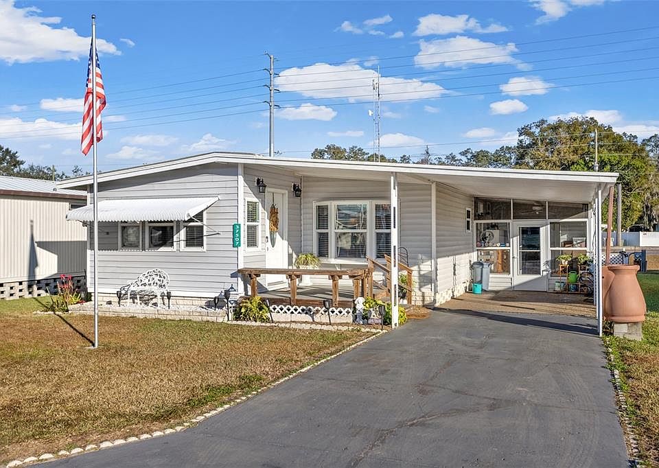IMMACULATE HOME with location location location! Just off Fort King Road nestled on Attica Avenue this 1152 square foot home has upgrades galore! The AC AND THE ROOF were replaced in 2019, the workshop was expanded (the seller permitted the addition) and the "mobile home walls and ceilings" are no more...there's drywall and the ceilings were retextured! The kitchen and baths have had updates too so the home is truly move in ready. As you drive up you see the lovely curb appeal of this home with the painted concrete driveway and the covered front porch with built in seating area. You enter the home in the den / office which has built in cabinets. This area flows into the massive 21.5 x 14 living room which boasts wood crown molding and door casings. The kitchen is nicely appointed with ceramic tile flooring, pantry and wood cabinets. The dining room has ample space for a large dining table, chairs and a hutch and there's a bay window that lets in the natural light and crown molding here too. The master bedroom offers pretty wainscoting on the walls, a 11 foot walk-in closet and a private bath with shower, raised vanity, medicine cabinet and linen closet. The second bedroom is also roomy with an 8.5 foot closet along one wall. There's a linen closet in the hall and the 2nd bath features ceramic tile flooring, raised vanity, medicine cabinet and shower. The Florida room has glass windows and a ceiling fan....this area leads to the laundry room and workshop/shed. The laundry room has vinyl tile flooring and a laundry sink. The water softener is housed here and it conveys with the home. The shed/workshop addition is 11 x11 and would be perfect spot for a project or storage. There's an optional $10 per year HOA fee...the community is 55+ and no rentals are allowed. You own your own land and have a private mailbox. Want to own some Florida sunshine with very few restrictions and a move in ready home? Well you've found it...make an appointment to see this home TODAY! Room Feature: Linen Closet In Bath (Primary Bedroom).