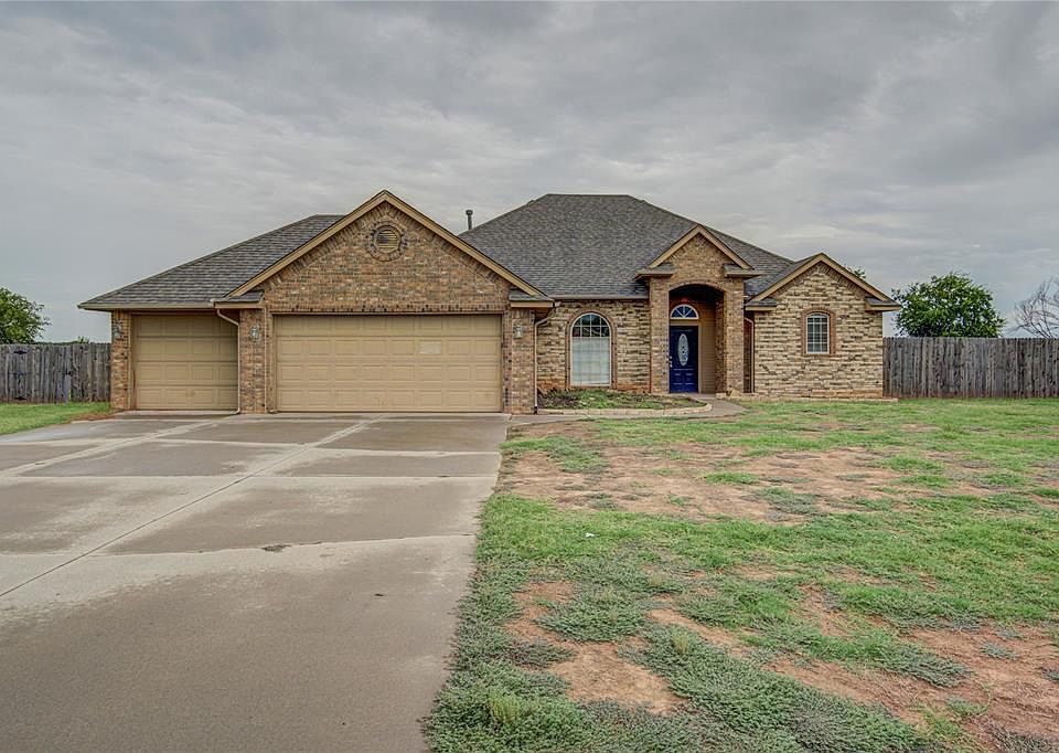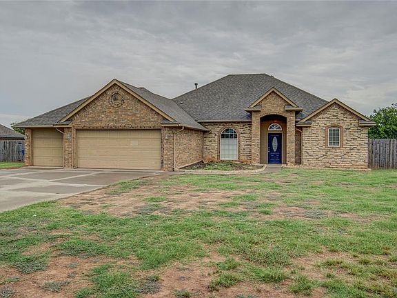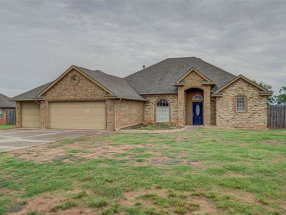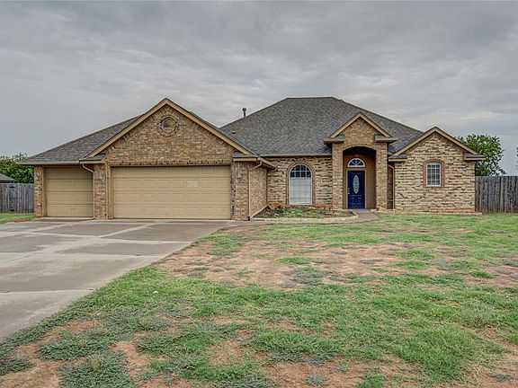 NEW ROOF! Installed July 2024. Rare find in Remington Ridge! Fantastic, hidden community close to both Hwy 9, I-35 and Hwy 62 in Newcastle. Split bedroom plan with 4 beds, 2 baths, large living area, gas fireplace, formal dining and breakfast room. Kitchen features stainless steel appliances and granite counter tops. Spacious master suite boasts double vanities, jetted tub and walk-in closet with built-ins. Enjoy your sun set views on the covered back patio! .5 acre lot, wood privacy fence and underground storm shelter.