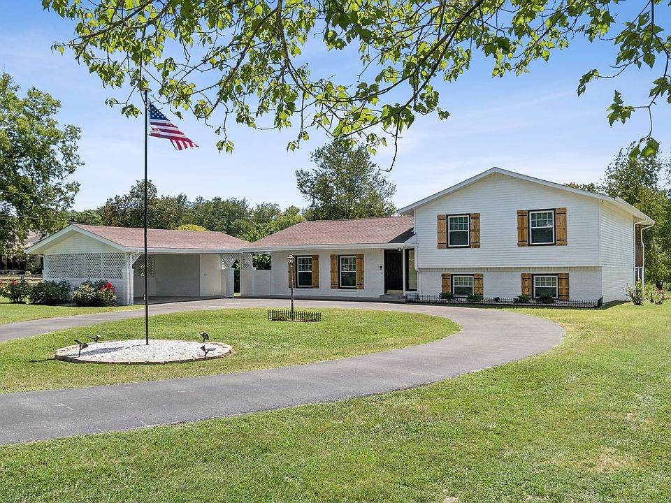 UPDATED!!! Nestled In The Rolling Hills Of Middle Tennessee, This 4 BR, 2 BA Split Level Beauty Sits On A Level Lot That Is Over 4 Acres! The Circle Driveway Leads You To An Inviting Entry Featuring A Large Carport, Covered Porch and Gorgeous Entry Foyer! Immediately, You Notice A Sunken Living Rm w/Cozy Fireplace. A True Formal Dining Room Will Welcome Your Family & Guests For Meals & Entertaining! The Kitchen Features Solid Wood Cabinets & Work-Efficient Layout! For Everyday Meals & Snacks, There Is An Eat-In Area, Leading Out To Deck w/Amazing Views! Back Inside, Upstairs There Are 3 BRs & A Gorgeous Bath, Complete w/Double Vanities, Whirlpool Tub & Separate Shower! The Primary BR Boasts A Private, Covered Balcony Allowing Full Enjoyment Of The Treed Acreage & Creek! Downstairs, There Is A Sitting Area, Eating Area, Wet Bar, Spacious BR, Private BA & Laundry Rm. The Sitting Area Opens To A Covered & Screened Patio. This Is A True Gem! Call For Your Private Showing Today!