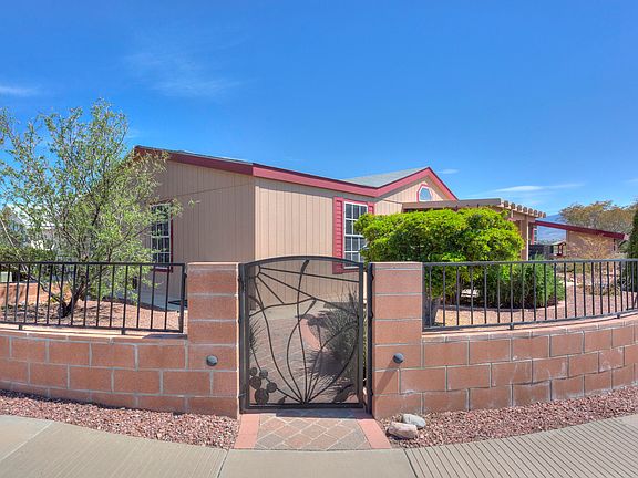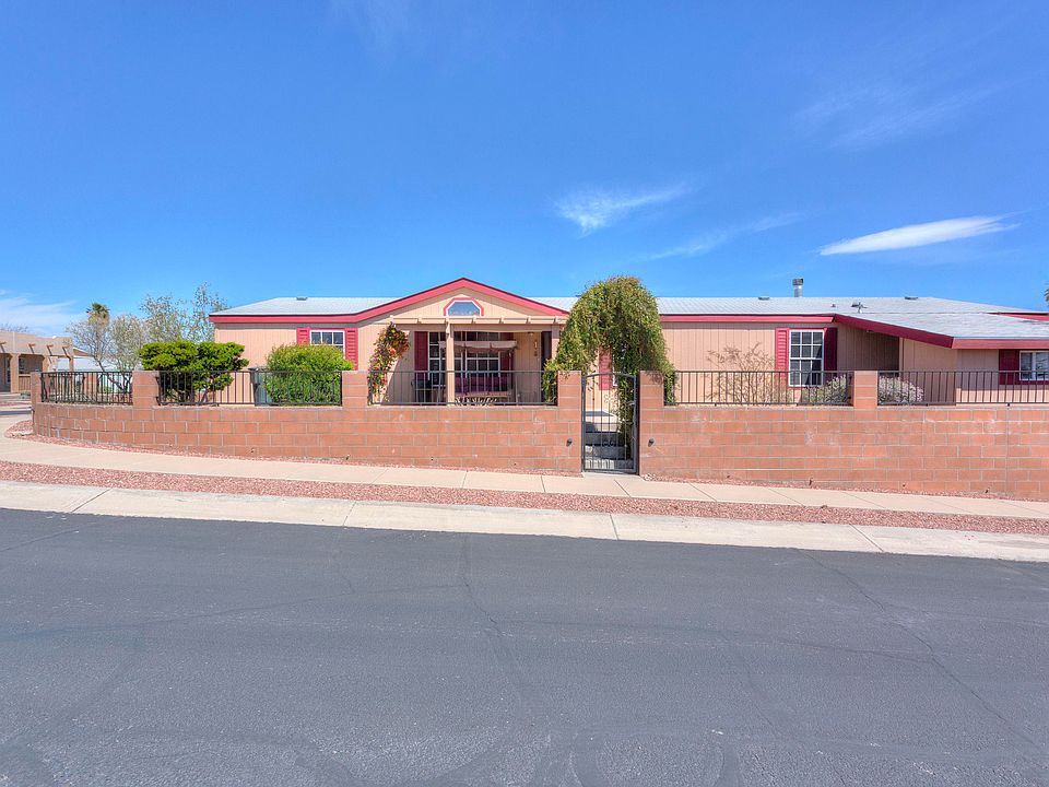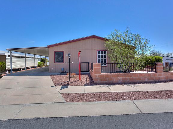 What a view! Beautiful 3BD/3BA ground set mfr home, over 2,000 sq ft, largest in subdivision.Ceiling fans, tile & wood floors throughout. Wood burning fireplace. Spacious kitchen w/desk area & plenty of cabinet space. 2 master suites w/large walk in closets, custom shelves.Extra storage in laundry room. French doors lead out to carport. RO & water softener system. Encl yard. Large patio, covered & extended area w/built in gas BBQ, island & chairs offers privacy & panoramic views of Rincons & Catalinas, perfect for outdoor entertaining. FX outdoor lighting, back patio mister & drip systems.Newer A/C & hot water tank, baths updated 2018. 2x6 construction, tape & textures walls throughout. Potting & storage sheds.No park rental fees, privately owned, low HOA fees. Don't miss out!
