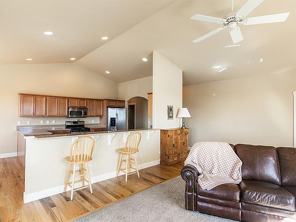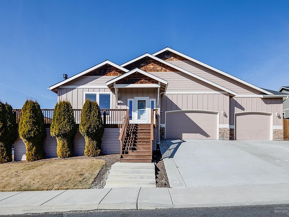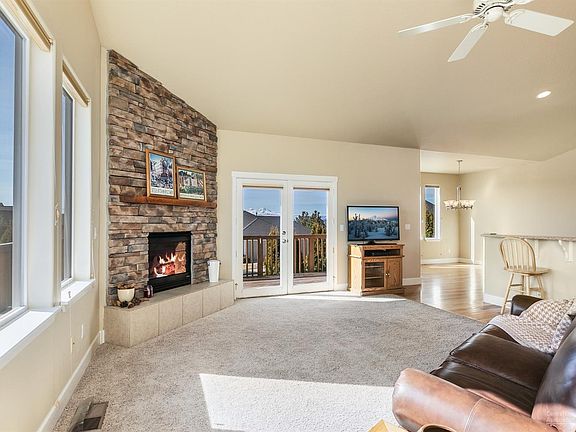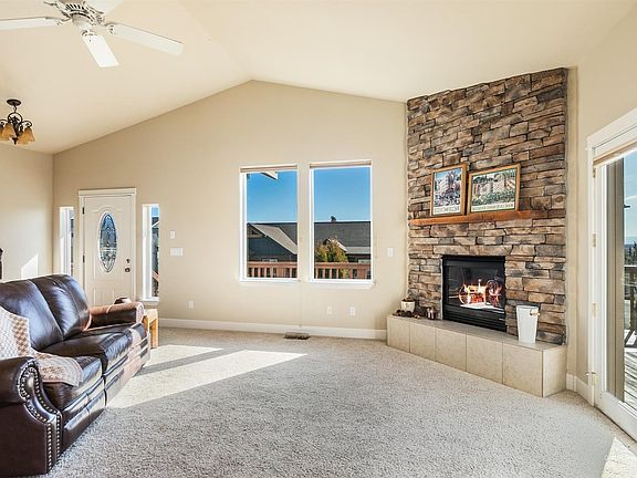 Forever views of the snow-capped mountains from this hill-top home in Cascade View Estates. Enjoy entertaining guests out on the deck or in the expansive kitchen/great room featuring vaulted ceiling and a gas fireplace. Granite counters and solid hardwood floors along with large picture windows bring in plenty of light and natural elements indoors. Relax away a long day in the indoor sauna or jetted soaking tub in the master bathroom. The master bedroom provides mountain views and comes with an attached, private office space. A separate den allows for an entertainment room or space for the kids to play. The home is equipped with a whole house vacuum. The extra large, 3 car garage provides plenty of room for your vehicles, even room for your truck. Rear, gated access to the home allows for extra space to park your RV or trailer. Storage abounds in this 2,892 sq.ft. 3 bed, 2.5 bath home on a corner lot. Ready to welcome you home today.