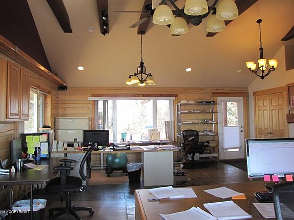 Beautiful handcrafted log waterfront home with high end modern finishes, top of the line appliances, and minimum wear since this has been used as a nonprofit administrative office. The property was recently converted to natural gas and a new gas cooktop installed. Snuggle up by the huge rock fireplace, and enjoy this space. Spectacular views greet you every day but fall sunsets are indescribable. This property is truly spectacular with Cook Inlet and volcano views, you feel are close enough to touch. Large paved parking area, beautiful walkways and grounds-what more could you ask for?