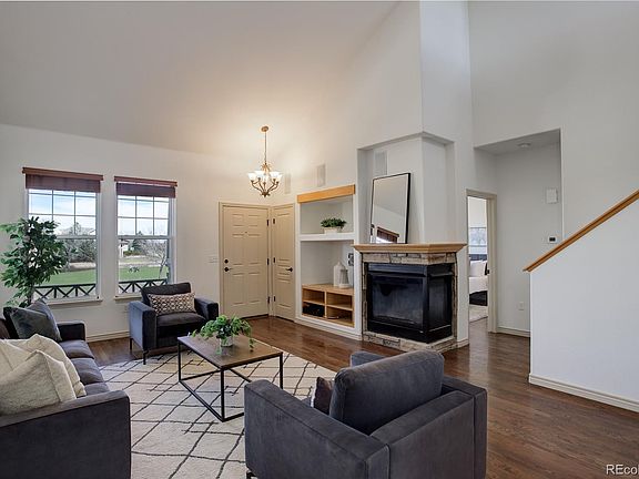 BREATHTAKING VIEWS FROM THIS STUNNING TOWNHOME ON THE BROADLANDS GOLF COURSE! Wake up to picturesque scenes every morning in your spectacular main floor retreat. With gleaming hardwood floors, soaring ceilings, and an open floorplan, this home is a relaxing oasis. The spacious kitchen flows seamlessly into the great room, with many windows to capture the gorgeous lake and course views. Upstairs makes a perfect guest suite with a full bedroom, bath, and a roomy loft with built-in library. The full basement is ready to be finished and adds ample room to grow. With a two-car garage, brand NEW furnace + a/c and no exterior maintenance, you can spend more time doing the things you love! This sought after community also offers a park, playground and pool. Great neighborhood, great neighbors. Just come and take a peek, you will love the peaceful, serene feeling. This is home.