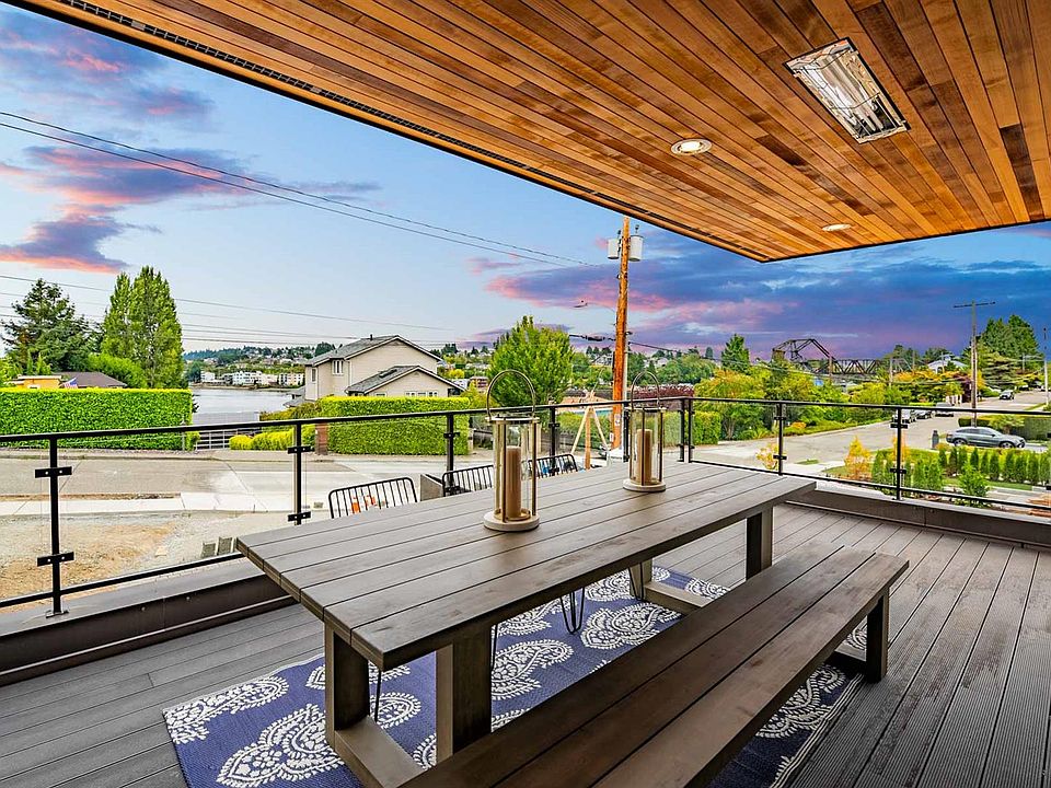 Beautiful new construction with attention to detail. High ceilings, Lots of light, White oak engineered Hardwoods and lots more details make this one not to be missed. Master suite with patio, Fireplace, heated tile floors and rain shower in the bath. Kitchen crafted with Custom cabinets, Wolf appliances, subzero fridge and over sized island open to the living area. View deck with 2 heaters bulit in to the ceiling for year round enjoyment. 2 tankless hot water heaters mean never having to wait for, or run out of, hot water. Quiet area of Magnolia with Discovery Park 1 block to the west and the Locks just 2 blocks to the east.