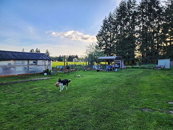 1.26 acre L- shaped lot with private driveway & setting. Has three structures: 2018 Pole Barn with Sage Green metal siding (21,024 SF), trim is Kodiak Brown, has loft, cement floor & wood stove; original homestead (400 SF); 240 SF greenhouse. Fenced. Apple, cherry, walnut & plum trees. Twisted willow live arbor. Great well & septic. Pole Barn has permit, interior improvements do not have permits.