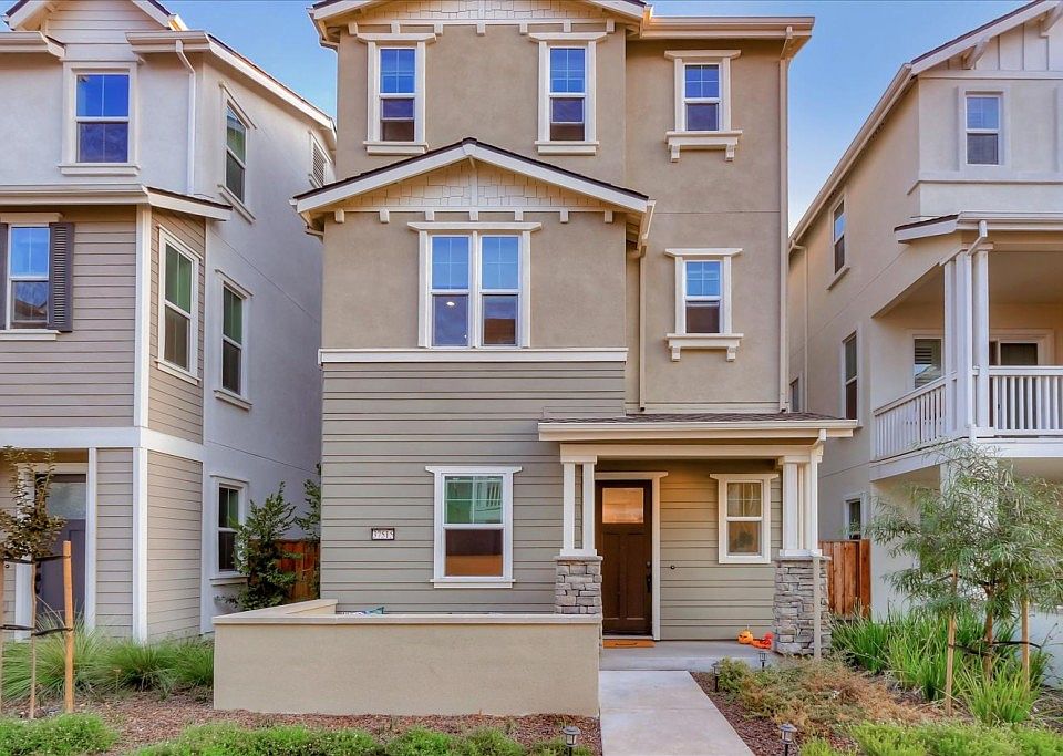 ell-appointed, pristine 2018 home built by Trumark Homes located in the Glass Bay Community in Newark. Spanning three levels offering 2410 sqft. 4 bedrooms/3 1/2 bathrooms. This home spared no cost in upgrades: Brand new flooring throughout common areas, Side Yard: brand new TREX engineered wood decking, Deck/Balcony: brand new TREX engineered wood decking, folding door at deck/balcony, single French door at den, whole house insulation, Kitchen upgrades: white shaker style, soft closing cabinets, beautiful quartz countertops, stainless steel appliances, LED canned lights throughout, Bidet ready gfi outlets on all toilet, West Elm window shades throughout the common areas, Restoration Hardware curtains and curtain rail system in master bedroom and living room, extra French door added for easy access to side yard. Well thought out Community park furnished with BBQ stoves, picnic area, playground, and green belt. Located a few minutes away from the Dumbarton Bridge and 880. This home NEEDS to be seen!Total upgrades (94k in total upgrades):Brand new flooring throughout common areasSide Yard: brand new TREX engineered wood deckingDeck/balcony: brand new TREX engineered wood deckingFolding Door at Deck/balconyOption Single French Door at DenWhole house insulationKitchen: quartz countertops and soft closing cabinetsUpgraded cabinets (white)Led canned lightsBidet ready gfi outlets on all toiletsWest Elm window shades throughout the common areasRestoration Hardware curtains and curtain rail system in master bedroom and living roomExtra French door added for easy access to side yard
