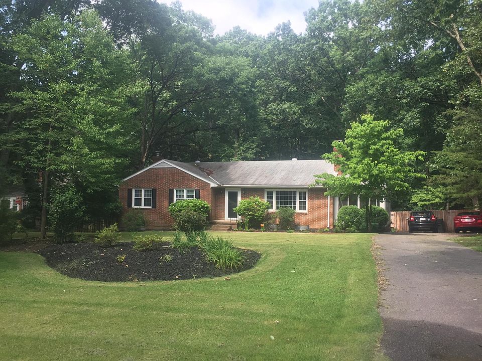 This spacious, well-maintained brick ranch is located in the convenient, family-friendly Stratford Hills neighborhood. Easy access to Chippenham Parkway, Powhite Parkway, the downtown expressway, and Huguenot Road/River Road- 15 minute commute to downtown, the Fan/Museum District, Carytown, or the West End; 10 minutes to the University of Richmond. Beautiful hardwood floors throughout, replacement windows, and landscaped yard. Large master bedroom with classic black and white tile master bath. Updated hall bath with modern fixtures. Two fireplaces: 1 Gas, 1 Wood burning. Rear 650 square foot two tier deck with pergola and huge fenced in backyard. Location close to the James River, Pony Pasture, and Huguenot Flatwater (kayak included in rental). The total sq. ft is 2102 heated and cooled spaces. 551 sq. ft. in the finished basement. Unfinished area about 1000 sq. ft., providing ample storage. 160 sq. ft. enclosed all season porch. First month's rent plus security deposit due at signing. House is available unfurnished or partially furnished. Pets welcome with deposit. Tenant responsible for yard upkeep.