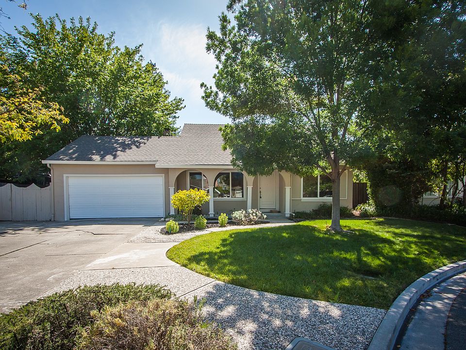 Laminate flooring in entryway and extending into family room and kitchen nook Wrought iron staircase Spacious living room with large windows overlooking the front yard Remodeled downstairs bathroom with tile flooring, slab counters, framed mirror and remodeled bathroom shower area with new tile and fixtures Two spacious downstairs bedrooms each with ample closet space Modern kitchen remodeled with slab counters, newer cabinetry, upgraded stainless steel appliances including microwave oven and center island peninsula with stainless steel sink Family room offers vaulted ceiling and brick faced fireplace with insert French door off of family room leading to large backyard Upstairs master suite complete with vaulted ceilings, remodeled bathroom with slab counters, dual sink vanity, tile flooring and custom selected tile surrounds. Extra storage space located in the two closets one of which is a large walk-in Recent updates include doorknobs, plumbing fixtures, lighting fixtures, upgraded carpeting, two-tone paint throughout, new windows and custom window treatments Backyard complete with vegetable planter boxes, cement patio/walkways and mature landscaping including grassy area Close to highly regarded Pleasanton schools, parks, shopping, major employment centers, freeways and BART