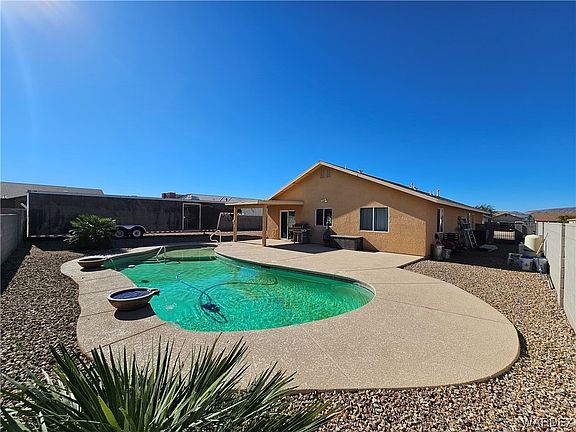 Welcome to your new oasis in the coveted Shangri-La Estates Subdivision! Just off of Route 66 in central Kingman Arizona, this immaculate 3-bed, 2-bath home boasts something for everyone. The open concept floorplan is complemented by large view windows with plantation shutters, vaulted ceilings, pot shelves, new laminate flooring, and fresh paint. Furnishings can be included with the property and truly make this home turnkey - perfect for the investor or first-time homebuyer. As a bonus this home includes a meticulously maintained and heated pool, and a brand new air conditioning unit to escape the hot summer months. The home sits on a large near quarter-acre lot with RV parking accessible by two large gates AND with full RV hookups. Only a few hours from the Grand Canyon, Las Vegas, southern California, or Phoenix! This one will not last long, contact your agent today!