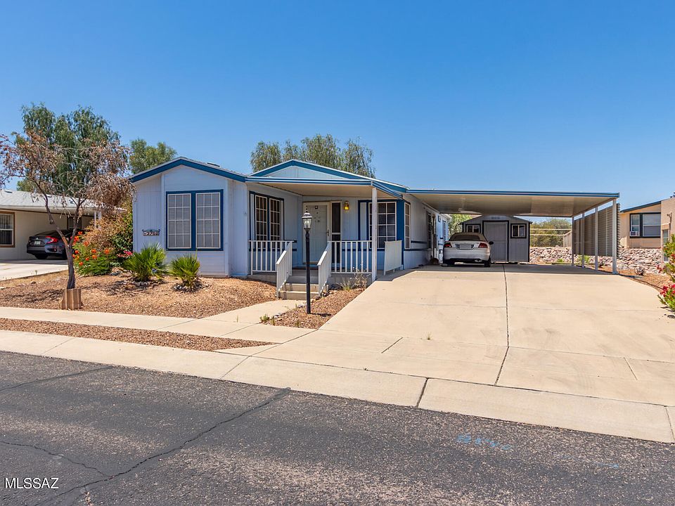 BREATHTAKING MOUNTAIN VIEWS! Charming manufactured home in the desirable Lincoln Terrace Community. Enter to discover the welcoming living room with neutral palette, vaulted ceilings, trending wood-look floors, and abundant natural light. The fully equipped kitchen offers ample cabinetry w/crown molding, tile counters, and a breakfast bar. The primary bedroom showcases plush carpet, a sizable closet, and a private en-suite w/dual sinks. This property also features a huge carport space and a storage shed. You don't want to miss this value.