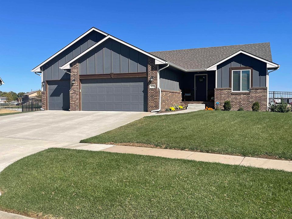 Stunning ranch with a Lakeview, and a yard big enough to be a baseball field! This five bedroom, three bath, three car immaculate home is in the Goddard school district. Split floor plan with a large master double sink vanity bath, and a walk-in closet. Large open kitchen with granite, eating bar, pantry. Living room and kitchen is part of a very popular open floor plan. The basement boasts an amazing rec room two more bedrooms, a full bath and two rooms for storage. The yard is perfection. This out of the ordinary large lot has a sprinkler system, a well, and a nice patio for you to enjoy your evenings and summer days in the sun with the view of the lake. I could go on and on on how immaculate and incredibly beautiful this home is. Set up your showing today because I’m sure she won’t be there long! Information deemed reliable but not guaranteed please check your school districts