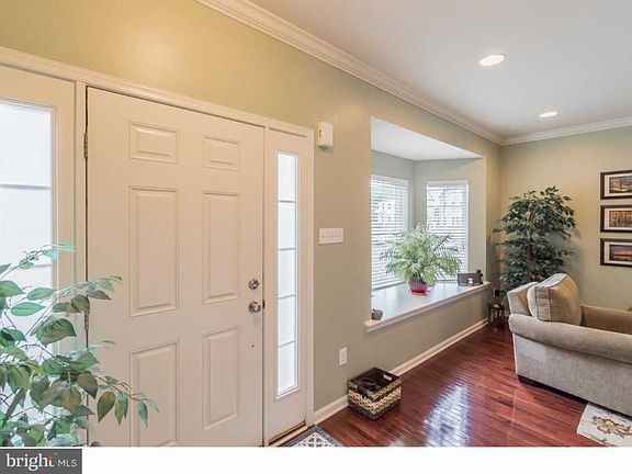 Carriage Hill is a community that offers its residents location and a maintenance free lifestyle in the Central Bucks School District; just minutes from Doylestown. With approximately 1,500 SF of living space on three levels, this 2 bedroom / 2.5 bath home is only 5 years young, well maintained, and move-in ready. The front door, just a couple steps off the parking lot, enters into the foyer area and Living room. The living room is spacious and a large bay window brings in lots of natural light. The main living level features 9' ceilings, crown molding, a gas fireplace, and hardwood flooring throughout. In the rear of the home is where you will find the kitchen and dining area. The kitchen is nothing short of functional and well-appointed with plenty of cabinet space, an island, stainless appliances, a tile backsplash, and granite countertops. Out a sliding door from the kitchen is a patio with gas fed BBQ hook-up, and the common courtyard area. Upstairs there are two bedrooms, each with their own full bathroom and walk-in closet. The main bedroom's bathroom has a soaking tub, stall shower and double sinks. The basement is finished with two large egress windows that bring in lots of natural light to the lower level. Toward the back of the basement, there is an unfinished utility area, which is where the laundry area is located and space for additional storage. Adjacent to the community is a park featuring a club house, walking paths, basketball courts, and soccer fields.