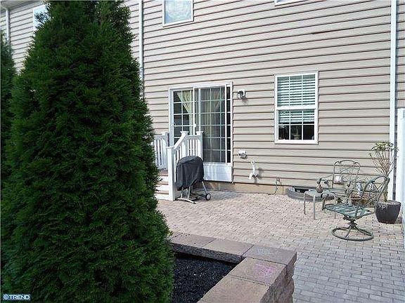 Loaded with upgrades! This home features a manicured landscaped exterior and gorgeous paver patio out back, which opens to a court yard. Enter the home into the foyer with hardwood floors and coat closet. An open floor plan on the main level includes recessed lighting and tasteful fixtures. The kitchen includes granite counters, plenty of cabinet space and center island that opens to the dining area. The nice size living room with wall to wall carpeting is warmed by the large windows that allow an abundance of natural light. The finished lower level family room has recessed lights and windows to brighten the area. Upstairs you will find a master bedroom with walk-in closet and a full master bath with stall shower. An ample size additional bedroom, with large closet space, plus a full hall bath complete the second level, and the third level offers a private third bedroom with double closet. Just a short walk to the township park and a short ride to Doylestown borough where shopping, dining and public transportation is readily available. Lawn, trash, snow and common area maintenance is included in the monthly payment..