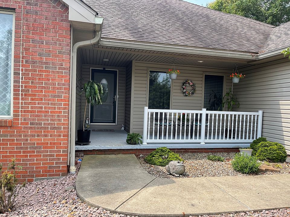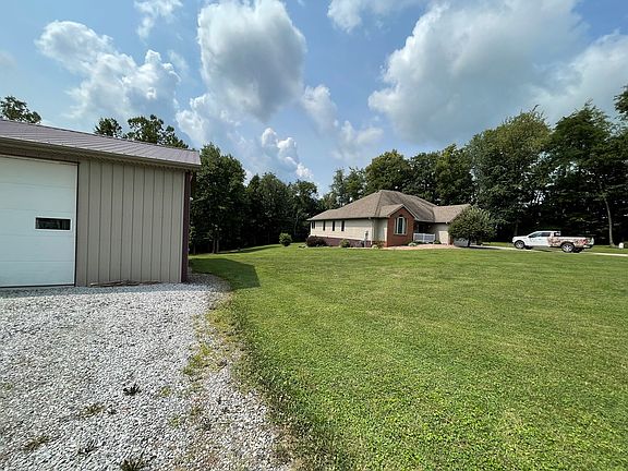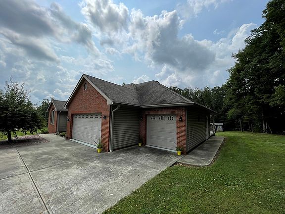 Barnesville, OH Country home for sale Brick & Siding Ranch home built in 2006 offering 1925 Square feet plus 600 square feet of finished walkout basement. 1.546 ACRES! 3 bedrooms, 2.5 baths. Nice high textured ceilings. Large kitchen 13' X 21'6", abundance of cabinets, two pantries, all with pull out drawers, eatery bar. Open into area for kitchen table. First floor laundry right off the kitchen. Wine bar between kitchen and dining room. Living room 17'2" X 16'11". Master bedroom/bath has double sinks, garden tub, tub and shower, large walkin closet. Finished basement with LP gas log fireplace, family/rec room. LED lighting in basement. Office area, Also large area for king size bed or pool table. 1/2 bath. Unfinished section of basement offers shelves for storage. Hot water heater, and Geo Thermal heating.... All electric home with geo thermal heating. Central air.. Monthly electric bill only $101.00. Home has 20 X 22 and 11 X 20 attached garages. 13 X 20 covered back deck accessible from sliding glass doors in kitchen. County water & septic system. Detached 1280 square feet 2 bay garage, concrete floor, tall garage doors with openers, water, hot water heater, and small loft area for extra storage. Storage shed 96 square feet. LOCATION 1.5 acres mostly all mowed lawn. Small strip of woods. Front and side lawn is nice and level. Back lawn is sloping toward woods. Plenty of room for parking, to built another building/garage and for a garden. Situated in the Country among other newer homes. Minutes from Interstate 70. *** GAS AND OIL RIGHTS ARE TRANSFERRING***