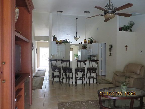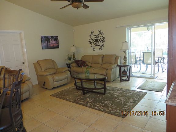 Wonderful pet and smoke free family home with 4 bedrooms, 2 baths, a caged heated swimming pool (pool resurfaced in 2013), and a panoramic view of the Cosmic waterway. It's real easy to keep clean as the home is nicely trimmed out with wood flooring, and tile throughout. Recently painted inside and all appliances are only a few years old and used seasonably. This home is move in ready. A great family home.