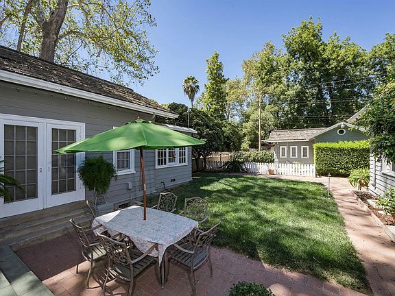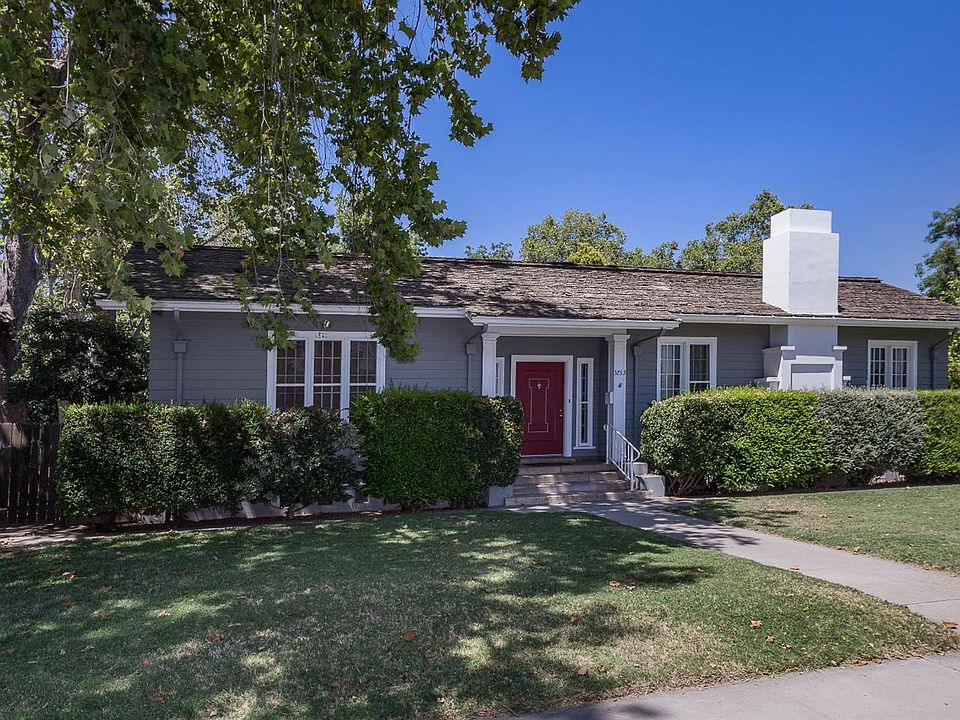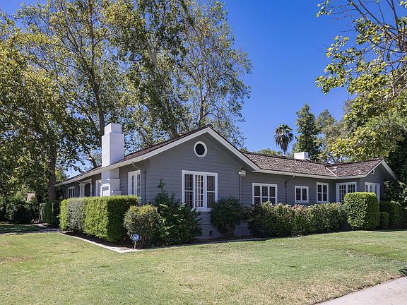 This 3300 square foot colonial revival-style home on the corner of East Balch and Eighth Street is known as the Mundorff Home. It was named after Mrs. Howard F Mundorff, the wife of a retired San Francisco Baseball player, who commissioned Henry Green in 1917 to design the house. The house, the only Greene & Greene design in Fresno, sits on 1/2 acre and is shaded by abundant mature landscaping. The front door opens into an entryway with white oak floors and round arches leading to bedrooms on the west side of the house and to the living areas on the east end. A family room with floor-to-ceiling windows overlooks the center courtyard. The tile fireplace, an element found in most Greene & Greene homes, is still intact in the living room. The ceiling is framed by wide crown molding with decorative grape and leaf details. The spacious formal dining area is separated from the kitchen by a butler's pantry that is almost as large as the kitchen.