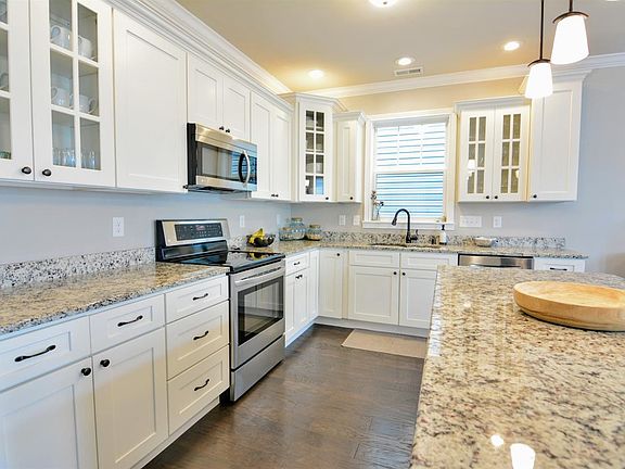 Open Floor plan!! Like-new 2 story with 4 bedrooms, 2 1/2 baths, the beautiful kitchen has tons of custom white cabinetry with glass fronts, huge kitchen island & granite countertops, pantry and large dining/breakfast area all of which is open to the great room featuring a fireplace surrounded by built-ins. Hardwood on first level,and separate utility room. This area leads out to a Custom 600 square foot paved stone patio ideal for entertaining. Home features include: 9' ceilings, high efficient HVAC, beautiful hardwood & porcelain tile flooring, upgraded trim & crown molding, . Master bedroom with spacious en suite with walk-in closet. Video available to view if you do not want to do in-person viewing