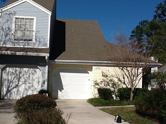 Very desirable end unit on the water and cul-de-sac with an over the water patio. Bright and spacious floor plan with vaulted ceilings, fans and fireplace, over looking pond with large newly refinished deck. Tons of storage with large walk-in closets, outdoor shed, attic and a one car garage. The master bedroom is located downstairs with a private bath and a large walk in closet. There is another master bedroom upstairs that has a large walk in closet with a separate full bath and loft area as well. The Moorings is located between San Jose Blvd and Old St. Augustine Road, conveniently located near I-295, shops and restaurants. One year lease. Renter is Responsible for Electric water and sewer with JEA, owner pays monthly condo fees which includes basic lawn care. $250 pet fee if approved.