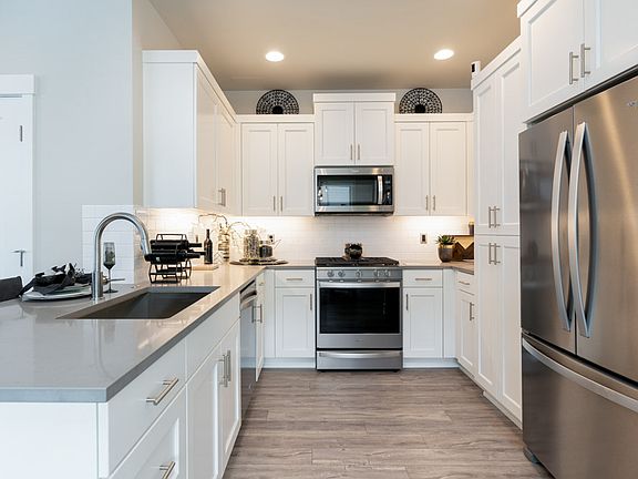 Cozy Paisley cottage home with front yard opening onto the large open space greenbelt built by award winning quality builder Pahlisch Homes. You will love the open concept kitchen/dining/great room, downstairs den, huge loft, gas fireplace and 8 foot sliding glass door leading out to side yard. Quality finishes include: 6 inch baseboards, tankless HWH, SS gas range/appliances, Quartz kitchen & bathroom counters, large kitchen bar, luxury laminate plank flooring throughout main living/kitchen/dining/bathrooms, double wall construction for added insulation, gutters, insulated garage door, and much more! Homeowners and residents here will have access to a full spectrum of private recreational amenities including swimming pools, parks, green spaces, and paved paths by Summer 2023. Completion date subject to change. Model home village open daily 12-4.
