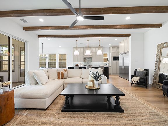 Step into next level style with this just completed 5-bedroom modern farmhouse that’s anything but basic. From the moment you walk in, it’s clear: this is where sleek design meets effortless luxury. Think soaring vaulted ceilings, exposed wood beams, and walls of glass that flood every inch with natural light. Wide-plank hardwood floors lead you into a dream kitchen built to impress ...oversized quartz and marble surfaces, a waterfall island, built-in coffee bar, walk-in pantry, and a full suite of pro-grade stainless appliances, including a commercial vent hood that means business. Grab coffee in the breakfast nook, or entertain like a pro in the open-concept living space, all under custom designer lighting that sets the mood.