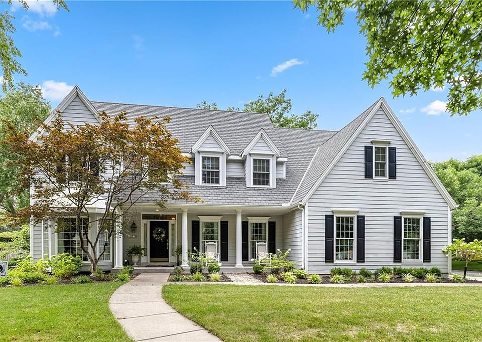 Welcome to this beautifully maintained 2-story Cape Cod nestled on a picturesque corner lot in the highly sought-after Waterford community of Leawood. From the moment you arrive, the inviting front porch and abundant curb appeal set the tone for the warm, timeless style found throughout. Inside, rich hardwood floors and a spacious, thoughtfully designed layout create the perfect blend of classic elegance and everyday comfort. The expansive great room is filled with natural light, boasting large windows, custom built-ins, and a see-through fireplace—perfect for gathering with family and friends. The main level also features a formal dining room and a versatile living room ideal for a home office, music room, or sitting area. The kitchen offers updated countertops and stylish backsplash, a center island, walk-in pantry, plus a bonus work space and additional cabinets, seamlessly flowing into the cozy hearth room with its own fireplace and casual dining area. Upstairs, the generous primary suite serves as a true retreat, complete with a spacious ensuite bath, his-and-hers closets, and an adjoining bonus room ideal for a private office, sitting area, or nursery. Three additional well-sized bedrooms complete the upper level. The exceptionally designed lower level offers an abundance of additional living space and endless flexibility with a possible fifth non-conforming bedroom, full bath, dedicated workout room or office, and ample storage. Outside, enjoy the peaceful setting from a brick paver patio and space to play. A 3-car garage adds even more convenience to this exceptional home. Such a classic Waterford gem!