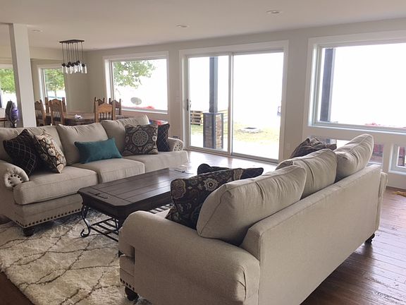 The only thing on this lovely waterfront home that didn't change is 101' of sandy frontage on Burt Lake and the incredible views that go with it. An open floor plan with two master suites, two fireplaces - gas and wood - a deluxe kitchen with Viking appliances and Cambria countertops - very high-end. Build date says 2016, because the existing structure was stripped the the bare bones and rebuilt with quality construction and high-end materials. Three-seasons room, cathedral ceilings, wood floors, and you. Main floor and second story master suites - the upper level master has its own fireplace and a private balcony overlooking the lake. So conscientiously designed and built that you can truly relax and live in the moment.