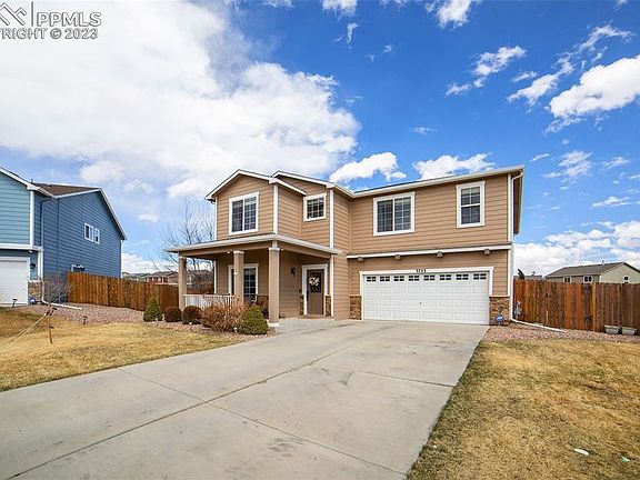 From the front of this home the Front Range and Pikes Peak are visible on any given clear day. As you proceed to the backyard, it is by far one of the biggest lots in the subdivision and backs to open space. The yard offers space for activities, gardening, or whatever outdoor space you've dreamed of. Moving inside the interior features hardwood flooring throughout the main level, stainless appliances including the gas range and not only is there a formal style dining space but a breakfast nook and high bar counter. Upstairs there's plenty of room for gaming or watching movies in the loft or convert to an office space. There are 3 bedrooms, laundry and a separate master retreat including 5 piece bath and custom walk-in closet. Just a short drive to the heart of Colorado Springs, Downtown, Military Installations and Powers Corridor.