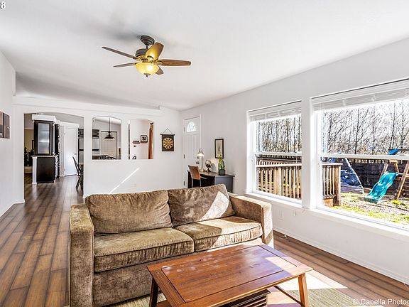 Sun-filled 3 bedroom, 2 bath home nestled on the hillside for lots of privacy. This 1,728 square feet homes feels bigger than the square footage suggestions. Spacious great room and master bedroom with en suite. Bonus 4th bedroom or office. Everyone from pets to people will enjoy the fenced back yard with fire pit and play structure.
