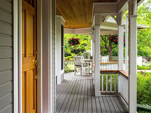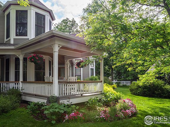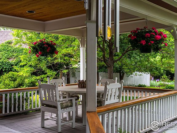 Hidden down a private drive, this coveted fairytale setting is a rarity in North Boulder. Timeless traditional two story is loaded with character and charm. The custom design and interior finishes create a warm and inviting home you'll never want to leave. Flooded with sunlight throughout the day. Classic wraparound porch - ideal for breakfast al fresco or an afternoon refreshment in the shade. Primary suite with private balcony, sunlit sitting area, dual closets. Chef's kitchen with subzero and bosch appliances, island with six burner gas range and a picture-perfect dining nook. Main floor bedroom or study with full bath around the corner. Lower level finished with two additional bedrooms, cozy family room, storage. Two car attached plus one car detached garages. Lush landscaping, mature trees, sprawling lawns, colorful gardens. A peaceful and quiet retreat. All a few minutes to the Pearl St Mall and foothills' trails. And Boulder's bike path is just down the street!