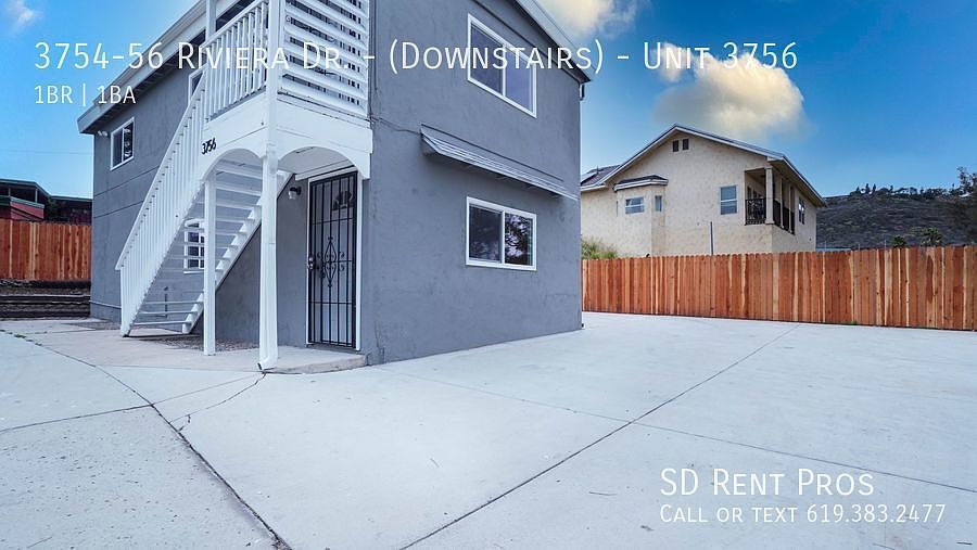 This 748 square foot apartment home has 1 bedrooms and 1.0 bathrooms. This home is located at 3754-56 Riviera Dr UNIT 3756, La Mesa, CA 91941.