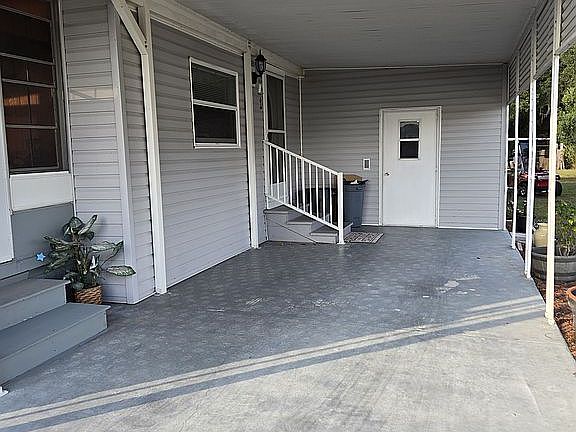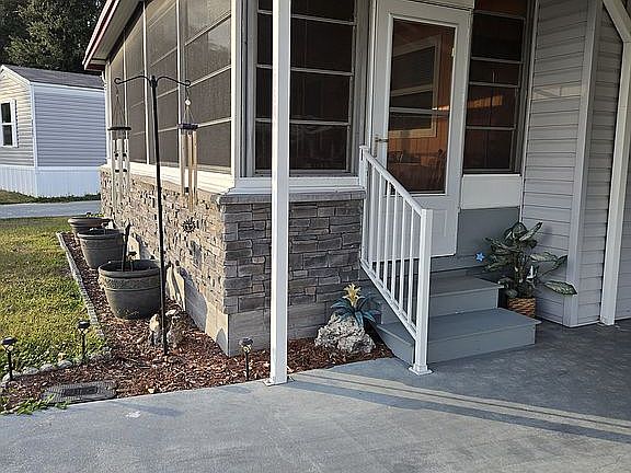 SHADY OAKS! Enjoy the great outdoors here on this extra large outside corner lot with views of woods, and lots of backyard. This doublewide mobile home has a recently installed Comfort ZONE insulated roof over. The seller has also had the A/C ductwork replaced, new hot water heater, ceiling fan, carpeting in living room, hall & bedrooms, and new flooring in kitchen and bath. There is a wonderful screened porch on the front of the home...spanning the entire width. The living is accessible from the porch through sliding glass doors..and is open to the eat-in kitchen and a dinette area. The cabinets have been recently painted and form an L for lots of cabinet space. The two bedrooms both have walk in closets. The bath vanity has been raised to a new height and a ceramic sink has been installed. There is a tub shower combination and linen storage cabinets here. The carport houses the SHED with storage shelving and the laundry facility. The back yard is HUGE....your lot overflows onto a large open area and finally into dense woods. Shady Oaks has lots of activities to offer; a heated swimming pool, shuffleboard and a large recreation hall with tons of activities! Come enjoy the Florida sunshine!