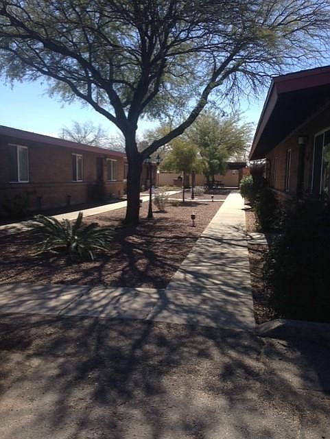 This is a totally renovated apartment with all new tile floors in a beautiful terra cotta color, custom cabinetry in the kitchen, newer tile and fixtures in the bathroom, a brand new HVAC, and it has been freshly painted from stem to stern! The rooms are spacious, and the storage is spectacular, including a coat closet in the LR, a pantry/linen closet, large closet in the 2nd bedroom, walk-in closet in the MBR, and a separate storage closet outside off the private yard area. There are new window coverings, and a washer/dryer hook-up. This is a primo end unit, which has a larger yard than most, and covered parking is just steps away from the front door. We have on-site managers who take care of repairs, etc. The park-like setting includes a ramada and BBQ area. Central location one block south of Ft. Lowell, and one block east of Dodge. See it now, as this beauty won't last! First and last plus deposit. Make application on this site at the bottom of the page after you have seen the apartment. Owner covers trash, water and sewer. Tenant pays electric.