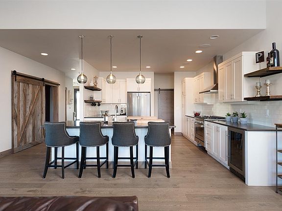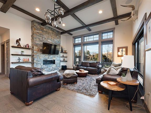 Urbane in its elements, this home is situated on a prime south Bozeman lot and backs to acres of open space with access to miles of trails outside your back door. Impressive chef's kitchen includes stainless steel appliances, quartz countertops & beverage fridge. Large windows in the living and dining area allow ample natural light and frame breathtaking mountain views of the Gallatin range to the south. Enjoy the hot tub just outside the sizable master bedroom. Master bath boasts freestanding soaking tub & steam shower. Master closet has convenient access to laundry room. Office/5th bedroom on main floor. Stylish elements include reclaimed barn doors, stone fireplace & tiled accent wall in entry. Upstairs has 3 bedrooms, full bath, family & bonus room. Heated 3 car garage with high-end glass panel garage doors. The fully fenced backyard is professionally landscaped and has an in-ground trampoline. Covered back patio and extra slab is great for entertaining and enjoying all the views!