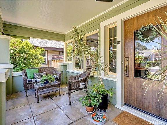 Look no further for a quintessential "Wood Streets" historic neighborhood 1918 Craftsman Bungalow with 3 bedrooms (one being used as a den), plus a sunroom/office, remodeled kitchen, 2 remodeled bathrooms, indoor laundry, central air/heat, whole house fan, tankless water heater, updated electrical, and a heated pool & spa that was replastered. The curb appeal is off the charts, and the porch is everything you've ever dreamed of. This incredibly charming home with abundant natural light streaming through the original windows is a testament to early 20th-century architecture, with custom built-in cabinetry, wood-burning fireplace, and hardwood floors throughout which add warmth and continuity to the space. The remodeled kitchen is a harmonious marriage of historical elegance and contemporary convenience, creating a space that is both practical and timelessly beautiful. The bedrooms are bright and spacious, one with a convenient en suite half-bath, and the hallway bathroom boasts a custom tile floor inset with 1918 minted quarter dollars. Stepping outside onto the wooden deck that stretches from one side of the yard to the other, sets the stage for your private oasis complete with palm trees, citrus, and a covered patio for year-round entertaining while overlooking the heated pool and spa with waterfall. This landscaped yard provides a serene retreat ... and you'll never want to leave!