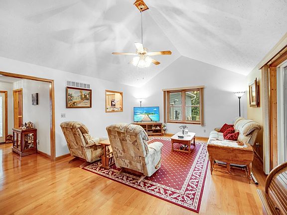 Welcome Home! This 3 bedroom, 3 bath ranch with a finished basement is ready for your instant enjoyment. The kitchen features an abundance of cabinetry, Corian counters with a breakfast bar, and convenient dining space with hardwood flooring throughout. The large living room flows into the sunroom that will probably be a favorite spot to gather. There are 3 bedrooms on the main level all with walk in closets and the master has a private bath, and laundry nook. There is a full hallway bath and plenty of storage. The basement is finished with a dry bar, rec space, family room with fireplace and built in shelving, and an office area or flex space for your needs. The home sits in .60 acres, has a covered porch, deck and patio out back. Come see it for yourself. Beautifully maintained.