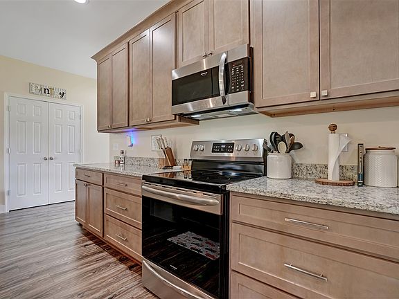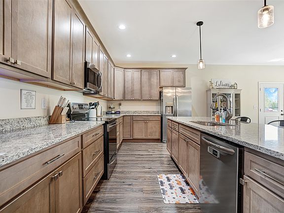 Welcome to this beautifully crafted 3-bedroom, 2-bath home that combines style, functionality, and comfort in every detail. Step inside to discover a spacious open-concept layout that effortlessly connects the main living areas, perfect for both everyday living and entertaining. The heart of the home is the kitchen, featuring custom-built cabinetry, a large island, stunning granite countertops, and sleek stainless steel appliances. Whether you're preparing a meal or hosting friends and family, this kitchen is a cook's dream. The living room is centered around a charming fireplace, creating a cozy and inviting space for relaxation or gatherings. Large windows throughout the home bring in an abundance of natural light, enhancing the home's warm and airy atmosphere. The master suite is a true retreat, offering a generous walk-in closet and a luxurious en-suite bath complete with a tile shower, freestanding tub and double vanity sinks. It's the perfect space to unwind after a long day. The additional bedrooms are well-sized and versatile, ideal for family, guests, or a home office. Nestled on a spacious lot, the property provides plenty of room for outdoor activities, gardening, or simply enjoying the peaceful surroundings. This home offers the perfect blend of modern design and thoughtful details, making it a must-see for anyone looking for comfort and style in a great location. Don’t miss out on this exceptional property!