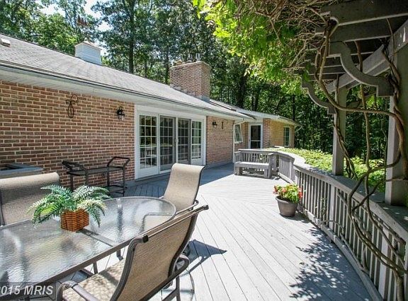 4BR, 3BA brick rancher on 3.89 acre lot (3 are wooded). Home boasts an exquisite gourmet kit. w/ granite counters, custom cabinets, crown molding, skylight, and recessed lighting. Feat an over-sized MB. The hall bath features a jetted tub surrounded by natural light. The fin LL could be in-law/au pair suite w/large BR, recreation area, and an eat-in kit. Maintenance free deck, patio, and garage.