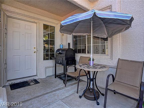Lovely 1-story townhouse with 3 bedrooms and 2 baths. Kitchen features granite counter tops, stainless steel appliances, recessed lighting and tile floors. Cozy fireplace in living room with vaulted ceilings. Spacious master bedroom and all bedrooms have nice vaulted ceilings too! Sparkling community pool and good location near all Summerlin has to offer. Don't miss this one!