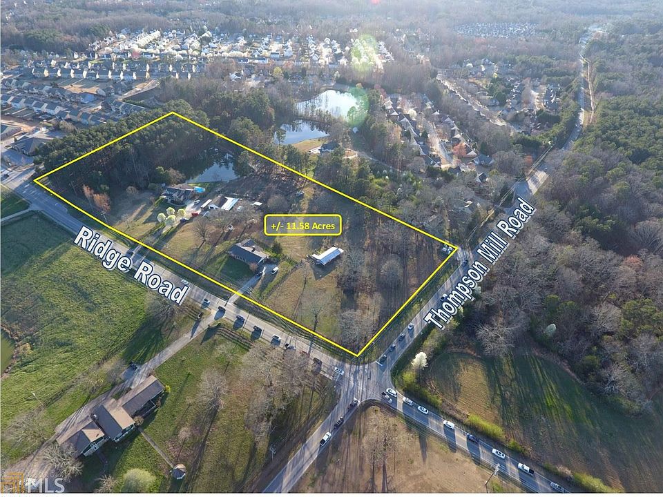 This +/- 11.58 acre property is currently zoned residential but has excellent potential as a commercial corner development serving more than 10,000 homes within a 3 mile radius. This corner could be an excellent location for a gas station, restaurant or other retail establishment. The property is currently a family estate with 3 homes and a small farm. Traffic counts of 8,610 VPD. Zoned RA-200. 1,000 feet of frontage on Ridge Road and 375 feet on Thompson Mill Road. Public sewer and water available to site. Seller willing to sell subject to rezoning.