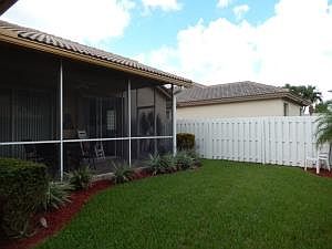 SPACIOUS AND BRIGHT 2 BEDROOM PLUS DOUBLE DOOR DEN WHICH COULD BE 3RD BEDROOM, 2 BATH, WITH LIVING ROOM, DINING ROOM, FAMILY ROOM. 2-CAR GARAGE WITH LARGE DRIVEWAY. REMODELED KITCHEN WITH GRANITE COUNTERS, EXTENSIVE CROWN MOLDING, HI-HAT LIGHTING IN KITCHEN, FAMILY ROOM, LIVING ROOM, FOYERS. LAUNDRY ROOM HAS WASHER, DRYER, SINK. TRANSFERABLE SERVICE CONTRACT ON APPLIANCES. TILE THROUGHOUT MAIN LIVING AREA INCLUDING DEN, PERGO IN MASTER BR, CARPET IN 2ND BR. SCREENED AND TILED BOTH PATIO AND ENTRY, ACCORDIAN STORM SHUTTERS ON ALL WINDOWS AND SLIDERS. BEAUTIFUL BACKYARD WITH HIGH PRIVACY HEDGE. WALK TO ACTIVE CLUBHOUSE, POOL, TENNIS COURTS. WELL MAINTAINED GATED COMMUNITY LOCATED NEAR WELLINGTON MALL, TURNPIKE, RESTAURANTS, SHOPS.