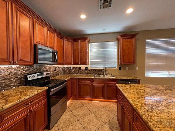 Don't miss this beautiful Mountain view home, available in amenity-rich Anthem Parkside. It is gorgeous inside and out with great curb appeal. There is a spacious flowing floor plan offering 4 bedrooms, 2 bathrooms, a formal living/dining area, and a separate open concept family room. Attractive diagonal tile flooring in all common areas. Inviting custom paint tones and large windows for soft natural light throughout. Beautiful granite kitchen features brand new ss appliances (refrigerator, range and dishwasher), and an island w/ breakfast bar seating. Bedrooms are generously sized, all with ceiling fans and soft, plush carpet. The owner's suite is complete with a walk-in closet. All tenant credit score must over 600, total monthly income over 3 time of rent. Pets only under 35 lb.
