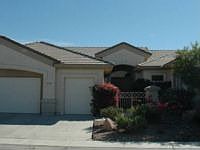 Sun City Palm Desert- Expanded Monaco. Located near the Mountain View clubhouse this home has an East facing rear yard w/an extended patio, hot tub and lush desert landscaping. A gated front courtyard and double door entry provide curb appeal. Inside, shutters are throughout; tile is in all but the living and bedrooms. The kitchen has a large island w/breakfast bar, speckeld corian counters, double wall ovens and a large skylight. The Master suite has a bay slider, a walkin closet w/mirrored ...