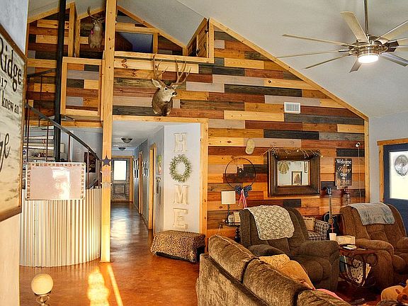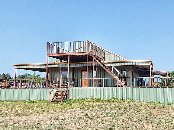 19.77 wooded acres with 2 level Custom built home with covered wrap around porch as well as wrap around uncovered deck and attached 20x52 carport. Huge 28x78 steel framed wood deck surrounding 18x33 swimming pool with salt pump. 30x50x14 insulated shop with 2-15x50 attached lean to's one of which is 15x27 enclosed with full bathroom and studio apartment. Another detached 20x30 carport/boat storage. Property is mostly wooded with wet weather creek and mol 2 acre pond. The property is called "Bodark Ridge" and has several ATV riding trails and has been used and can be sold as a business opportunity for wedding venues as current owners have began adding an old grain silo with two big picture open type windows with wooden counter tops, cement floor with 8 sitting stools with old metal tractor type swivel chairs. Has cement side walk out to small pier to the pond. The pond is currently low due to drought conditions. Very rare property with beautiful "million dollar view" of the Quartz mtn that can be admired from the balcony attached to the home. There are all kinds of abundant wildlife, mostly deer and Turkey that can be viewed from inside the home. Sometimes the animals will walk within feet from the house. There is not another place like this anywhere in SW Oklahoma. Truly one of a kind "barndominium"!!